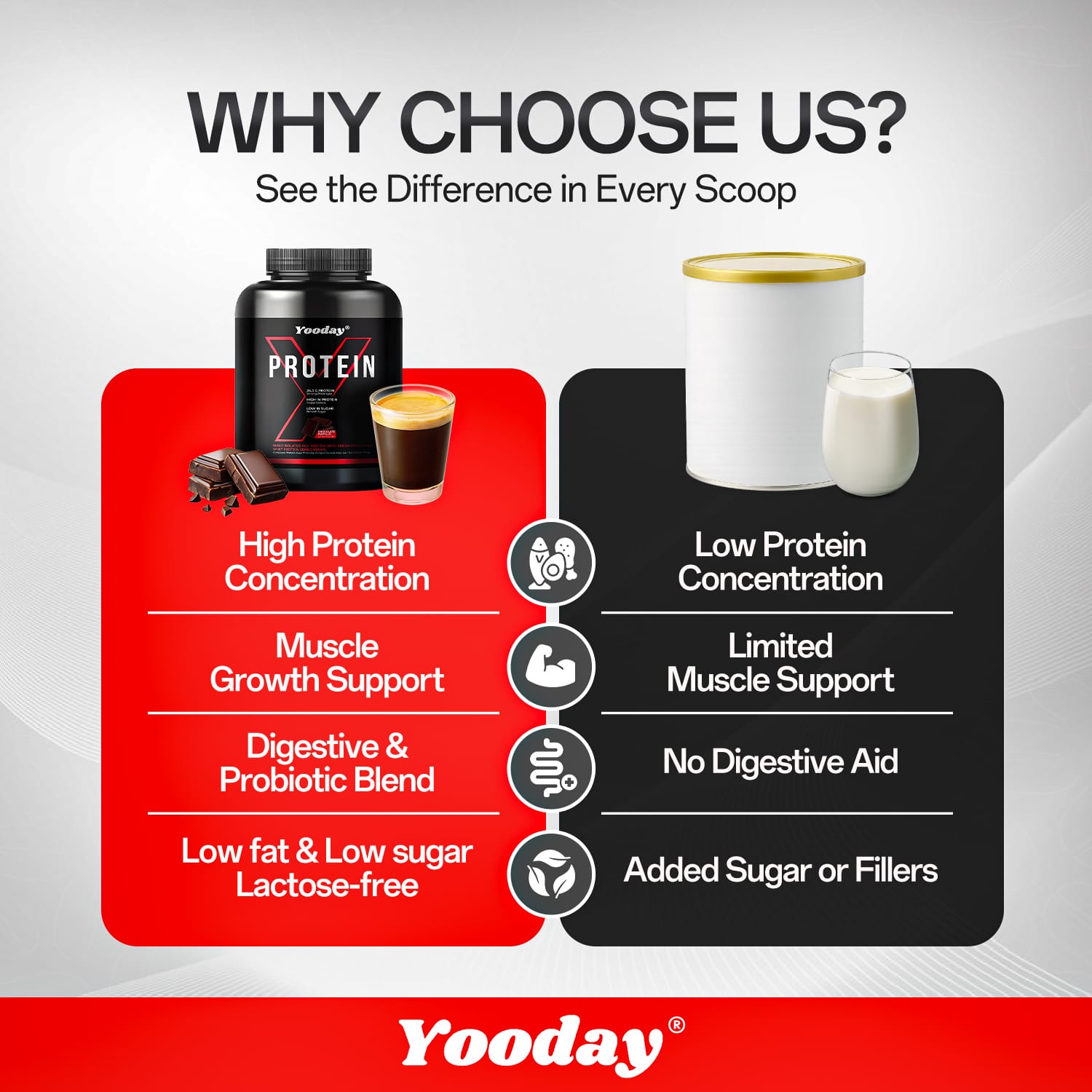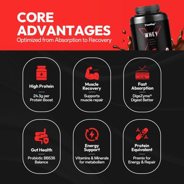 -Get stronger, leaner, and healthier with Yooday Whey Protein, the perfect protein supplement for your daily fitness and weight control routine.