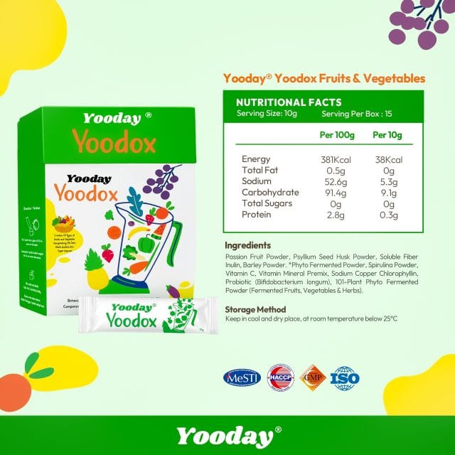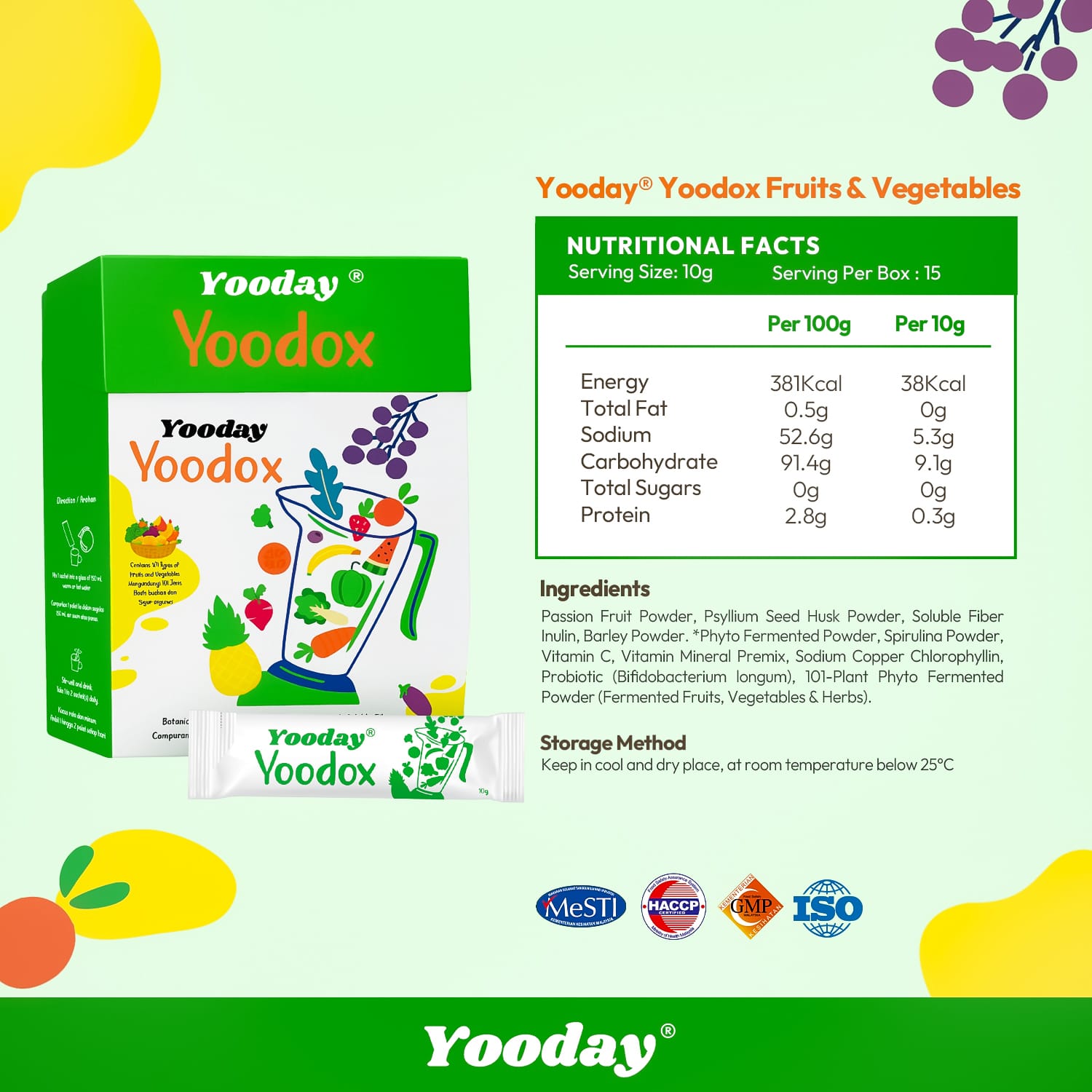Yooday Yoodox is a high-fibre detox drink designed to support daily detox, smooth bowel movement, bloating relief, gut cleansing, and weight management.